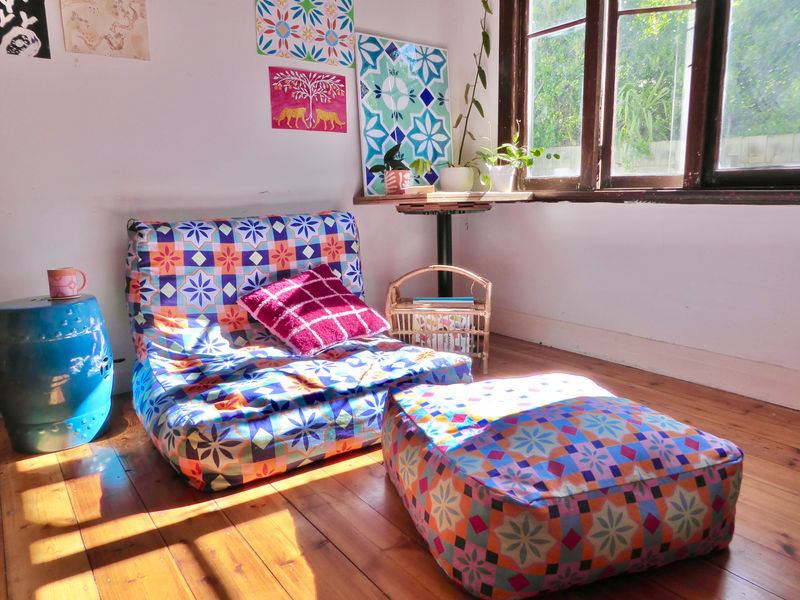 Hand-painted designs digitally repeated and printed on canvas fabric
